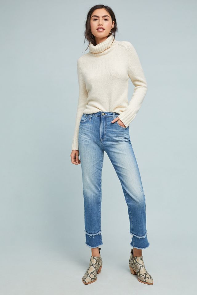 Shop womens and mens Denim Clothing Accessories. True mid-rise style featuring a 32-inch inseam which flatters most body types. The AG Isabelle jean offers a fitted silhouette through the hips straight fit through the thighs and a cropped leg opening with raw hems.