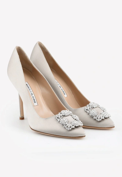 Buy Manolo Blahnik Womens Hangisi Bridal 70 Ivory Satin Pumps. Styled in ivory with dazzling crystal embellishments on the pointed toes and leather insoles to provide comfort these satin Hangisi pumps will never fail to lift your outfits. Shop Manolo Blahnik hangisi Pointy Toe Pump In Ivory Satin from 400 stores starting at 1215.